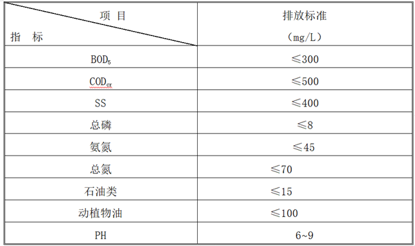 排放標準達到廣東省《水污染物排放限值》(DB44/26-2001)第二時段三級標準與《污水排入城鎮(zhèn)下水道水質標準》(GB/T31962-2015)B級標準的較嚴值。