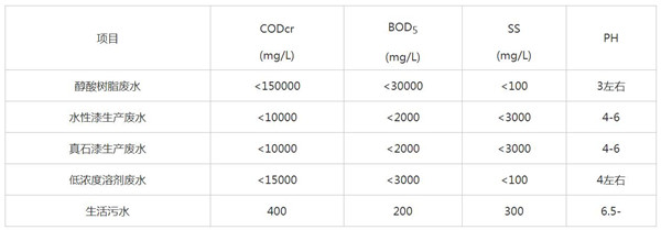 1、醇酸樹(shù)脂廢水:廢水中主要含有三苯、醇類(lèi),醚類(lèi)、脂類(lèi),廢水的COD為130000-150000mg/L。