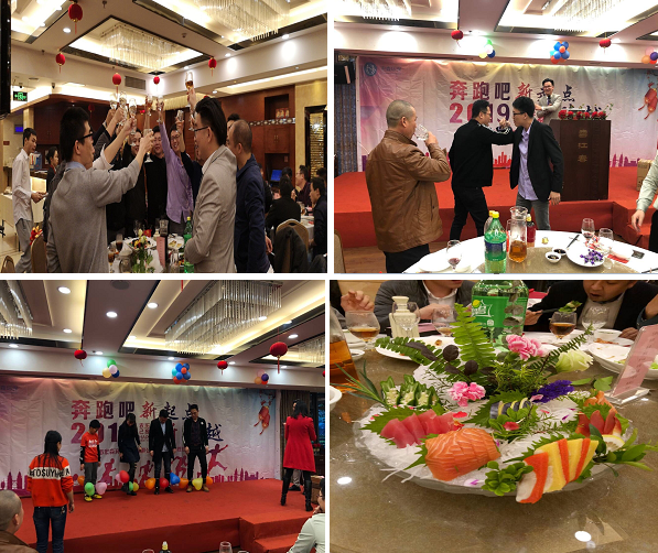 抽獎環(huán)節(jié)結(jié)束后,是美味的大餐和高純的美酒。整個會餐期間,不僅有歡聲笑語,祝酒聲也此起彼落,胡總、吳總還發(fā)動了多輪搶紅包大獎,把年會的氣氛推向了高潮。